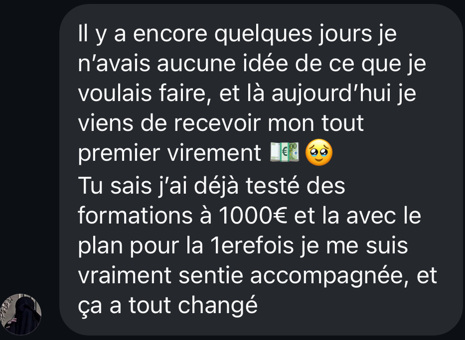 Encore une autre cliente qui a généré 70 000€ avec son business en ligne sans aucun stock de produits.