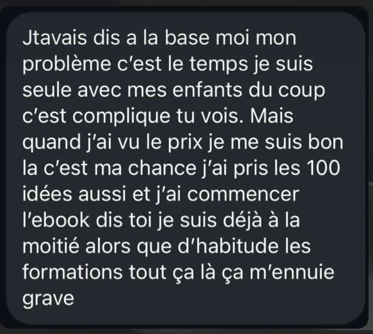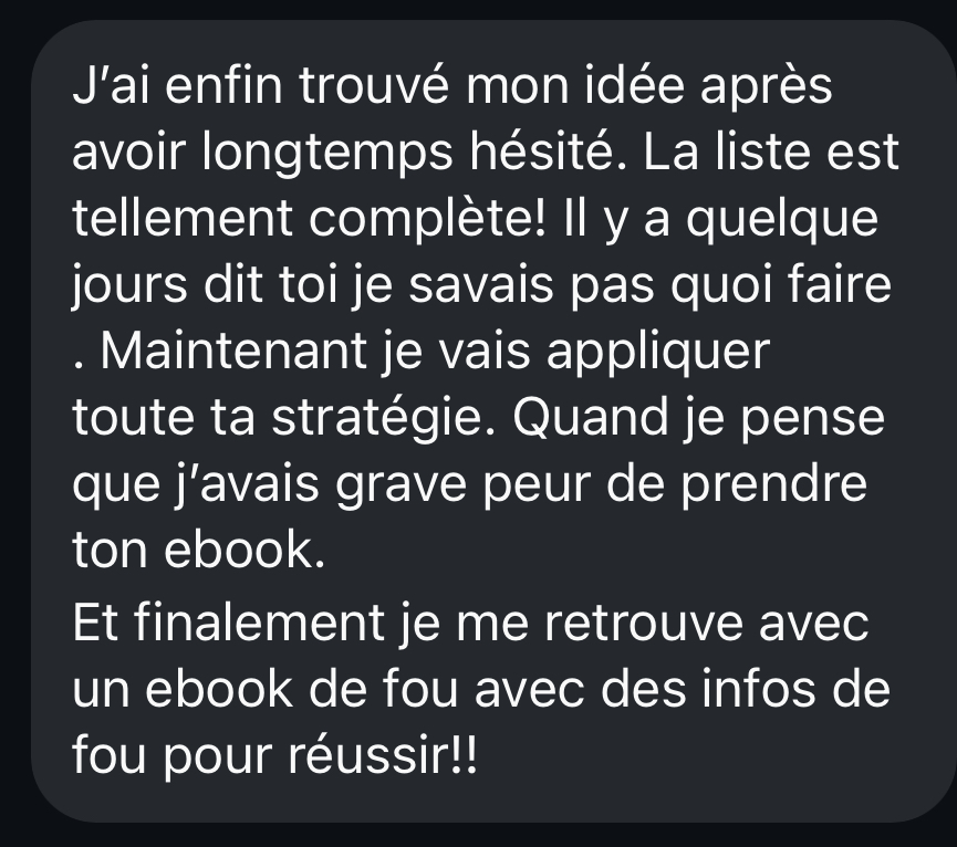Plus besoin de chercher pendant des semaines. Je te donne tout : des idées concrètes et adaptées à tes ambitions.