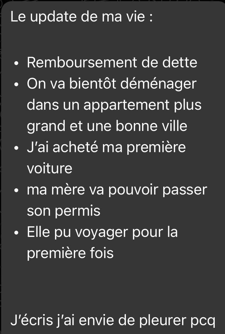 - Une vie où tu peux penser à autre chose qu’aux factures et aux limites de ton budget.