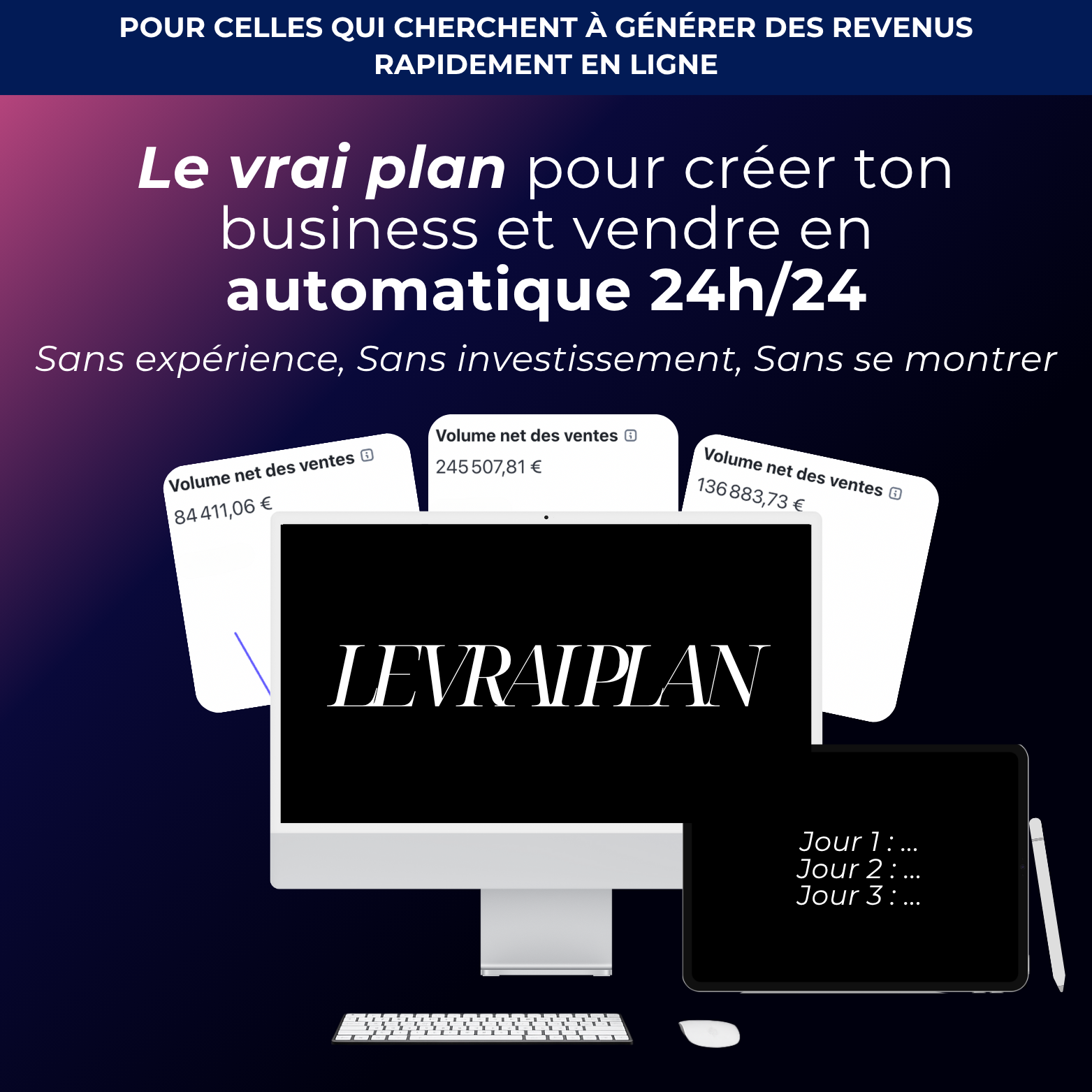 ➕ Un plan concret, qui t’emmène du point zéro à un business qui vend 24h/24